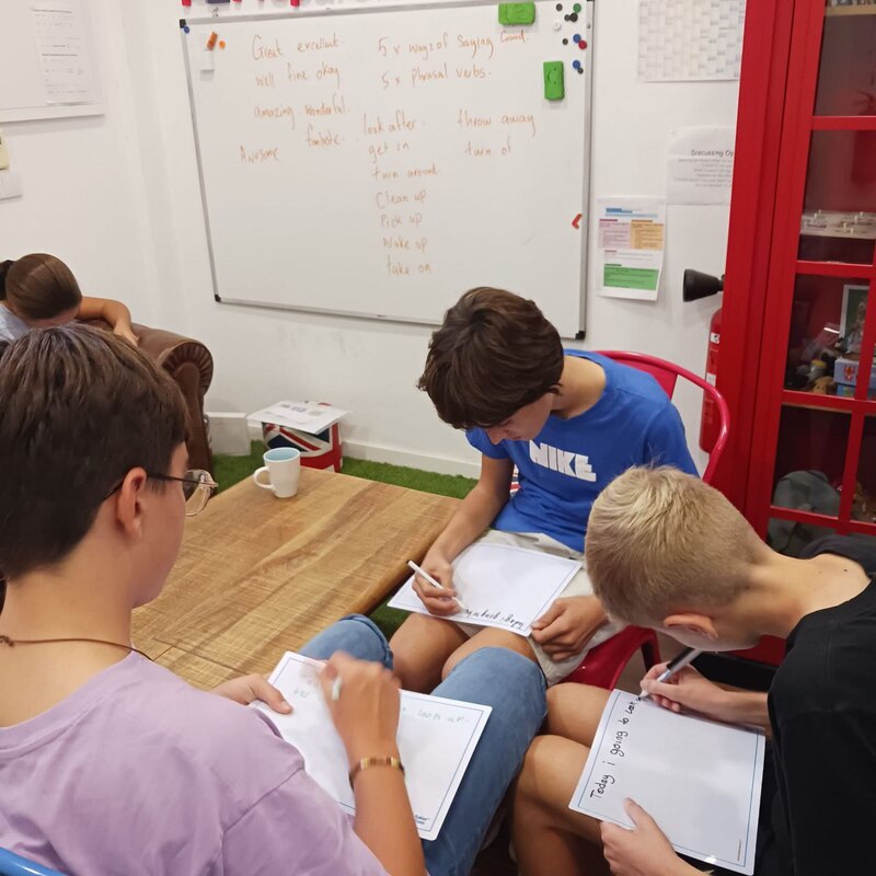 Niños y niñas desde los 3 años [Lunes a viernes de 17:00 a 19:00] Combinación de canciones, cuentos, juegos, deporte y teatro. Adolescentes [Lunes a viernes de 19:00 a 21:00] Ofrecemos apoyo complementario al estudio de inglés que llevan a cabo en el instituto, les preparamos para presentarse a los exámenes de Cambridge y les motivamos a seguir aprendiendo y mejorando su inglés. Adultos Mañanas: martes y jueves de 10:00 a 11:00 Tardes: martes y miércoles de 20:00 a 21:00 y viernes de 19:00 a 20:00 Ofrecemos conversación en un ambiente relajado (temas de actualidad, noticias, juegos de mesa, etc.), así como preparación para los exámenes Intermediate y Adavanced de Cambridge. Clases y cursos online también disponibles. In our academy, we offer different groups and timetables according to students' age and level: